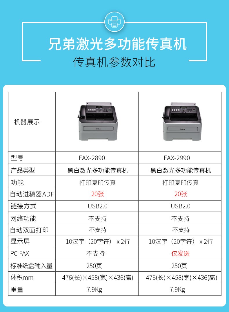 商品名称:兄弟FAX-2890 黑白激光多功能传真机A4纸打印复印一体机电话办公家用商用替2820 FAX-2890官方标配